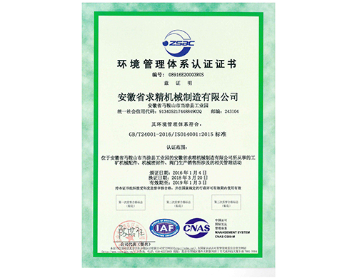 環(huán)境管理體系認證證書